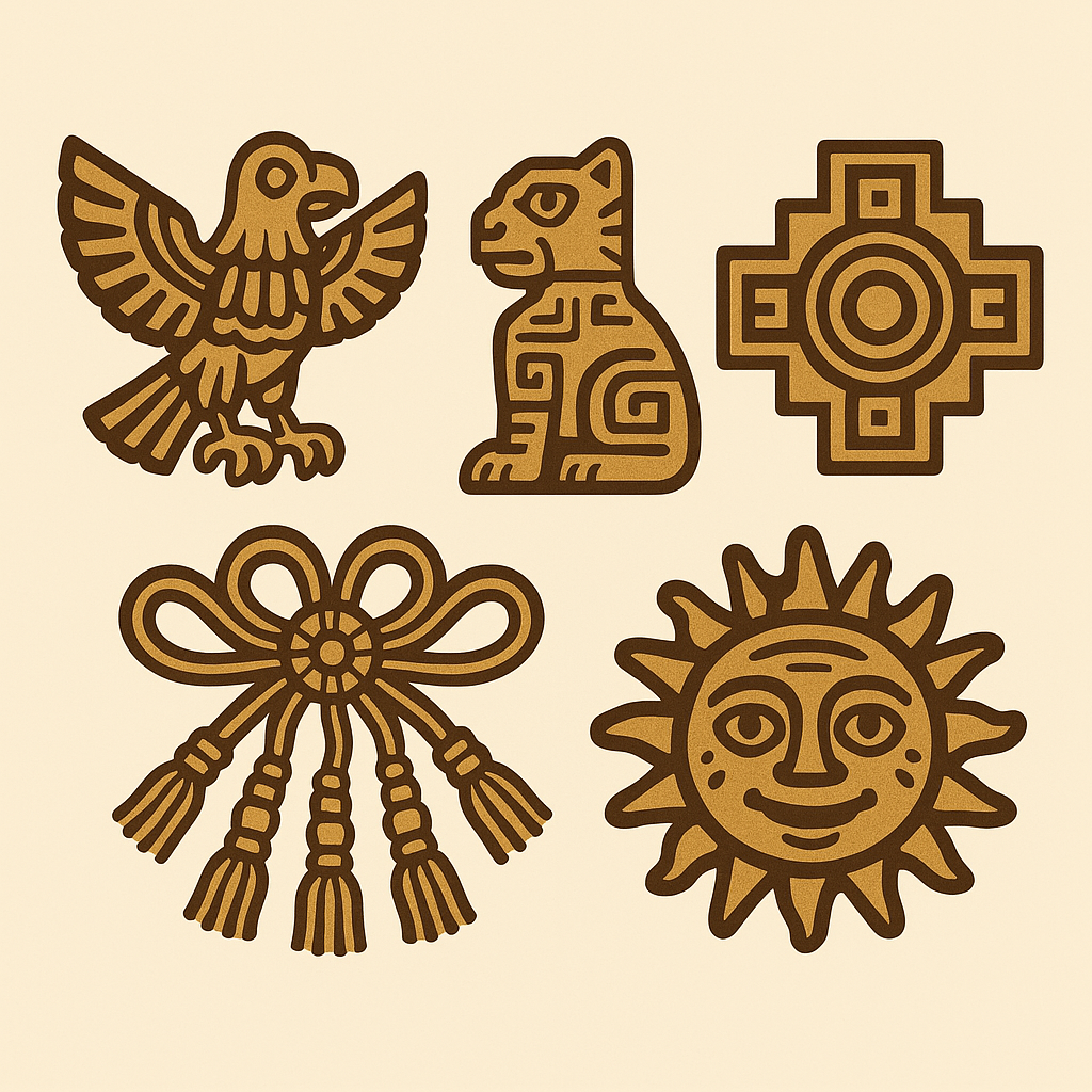 La iconografía inca está profundamente relacionada con su cosmovisión. Cada símbolo tenía un valor espiritual, social o natural. Entre los más representativos encontramos: